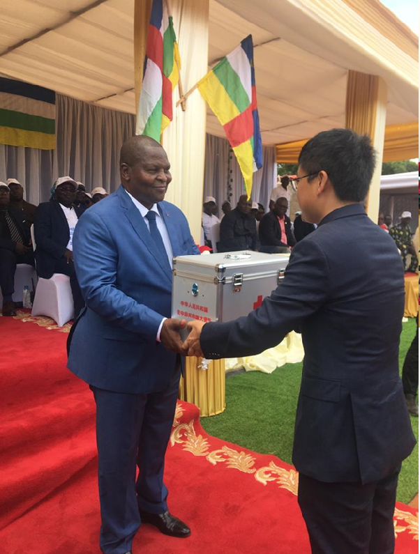 Puis l’ambassadeur de la République Populaire de Chine, Li Qinfeng a son tour remis la valise médicale, Don de son gouvernement au président de la République. Les leaders Communautaires (les maires des arrondissements) ont également reçu à leur chacun une valise médicale. La visite d’un ménage a mis fin à cette célébration.