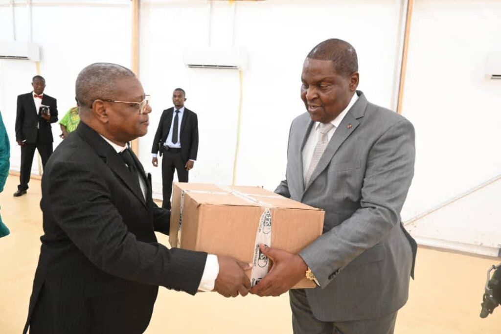 𝗕𝗮𝗻𝗴𝘂𝗶, 𝟭𝟮 𝗳𝗲́𝘃𝗿𝗶𝗲𝗿 𝟮𝟬𝟮𝟱 – La #Maison_Russe en #Centrafrique a remis ce mercredi un important lot de médicaments contre le #VIH_SIDA au Ministère de la Santé et de la Population, en présence du Président Faustin Archange #Touadéra.