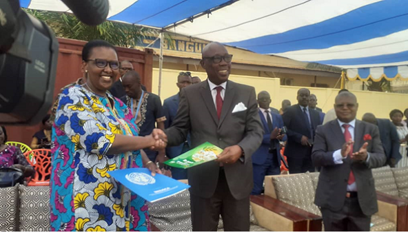 La représentante spéciale du secrétaire général des Nations unies en Centrafrique, Valentine RUGWABIZA a remis officiellement un Don en carburant de 50 mille litres au gouvernement Centrafricain le 20 juillet 2022, au centre Hémodialyse à Bangui. C’est le Premier Ministre, Félix MOLOUA, qui a réceptionné ce Don en présence de quelques membres du gouvernement et du personnel du système des Nations Unies en RCA. Dans son de circonstance, la cheffe de mission, a souligné qu’une absence en carburant ont des conséquences immédiates dans les services où le besoin se fait sentir, tels dans les blocs opératoires ou autres services nécessitant l’oxygène. Quant au responsable du département de la santé, Docteur Pierre SOMSE, au nom du gouvernement a exprimé sa gratitude à la cheffe de Mission Onusienne. Il a précisément qu’à ce jour les besoins recueillis parés services de santé sont évalués à plus de 40 mille litres de carburant pour les interventions d’urgences prévues. Docteur Pierre SOMSE en a profité pour formuler une demande urgente à l’endroit de la cheffe de la MINUSCA, celle de plaider auprès des contingents afin que ceux-ci appuient en logistiques aux déploiements des équipements des vaccins et du personnel pour les interventions dans les zones reculées, ou en situation de crise sécuritaire. La signature d’une attestation par les deux parties a mis fin à cette cérémonie.
