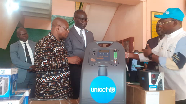 Le Ministre de la Santé et de la Population, Docteur Pierre SOMSE a réceptionné ce 28 octobre, 300 concentrateurs d’oxygène, don de l’ UNICEF au dit ministère. Ce Don d’une valeur d’environ 286 550 000 FCFA, se situe dans le cadre du mécanisme de financement des fournitures qui vise à améliorer l’accessibilité et la disponibilité de l’oxygène dans la région de l’Afrique. Autres les 300 concentrateurs d’oxygène, 50 débitmètres de 0-15 litres LMK, 50 débitmètres de de 0-15 LPM oxygène, 25 monitors, patient, portable, w/acc, 100 stabilisateurs de tension électrique ont également été remis.